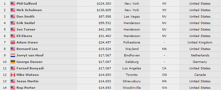 Tras vencer a Nick Schulman en HU, Phil se levantó también con un cobro de U$S 224.338 y supera los U$S 2 millones en cobros logrados en el circuito. 14 jugadores entraron en cobros, ellos fueron: