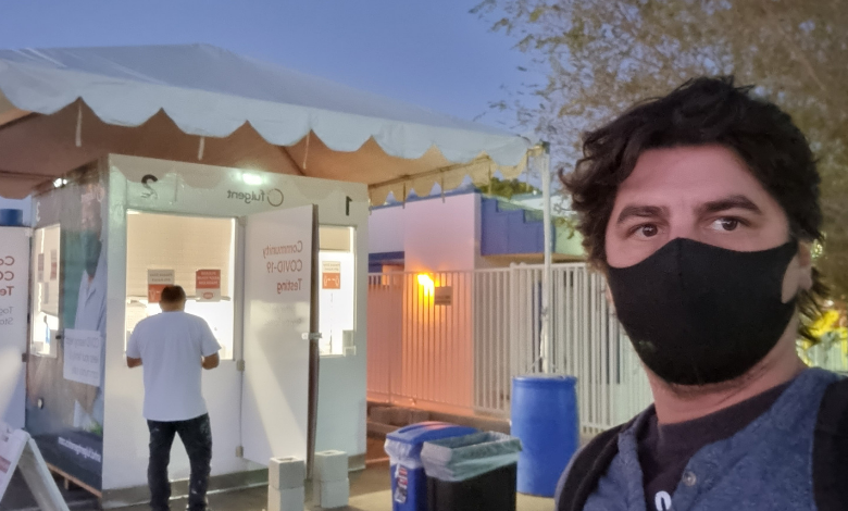 Hace 1 hora nos hemos realizado el PCR (gratis, de otra manera tenía un costo de 120/150 dólares), recurrimos a un servicio gratuito que ofrece el Estado de NEVADA. Es en los suburbios de la ciudad. Para eso tuvimos que tomar el bus 203 que por 2 dólares nos llevó desde el Casino Río hasta el centro de atención.