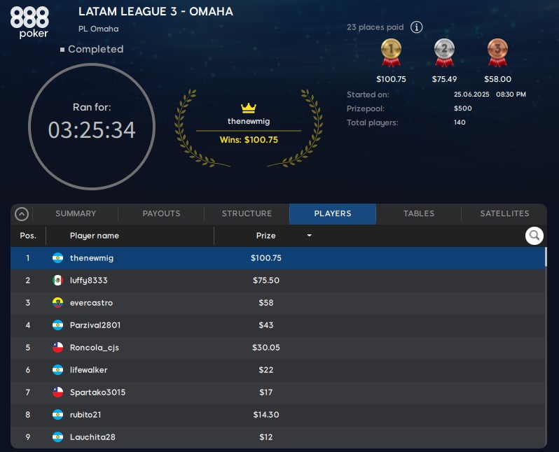 RANKING MENSUAL y también a los que participaron. Aquellos ganadores de tickets deben enviar su número de support ID a info@pokerlogia.com para ser acreditados en sus respectivas cuentas de 888poker. (tiene hasta el 5 de JULIO o perderán el derecho al mismo)