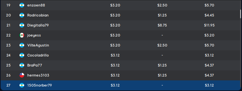 que finalizó en el puesto 32° se quedaría con el ticket de premio por ser la burbuja. Además «Neville1905»