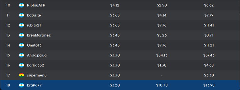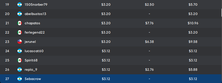 | 11 | danipokerpaz | ARG | 0 | 0 | 27 | 27 | |