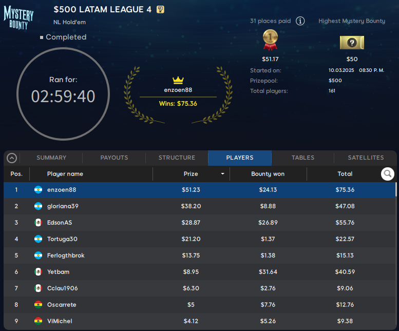 que finalizó en el puesto 32° se quedaría con el ticket de premio por ser la burbuja. Además «chokopoker»
