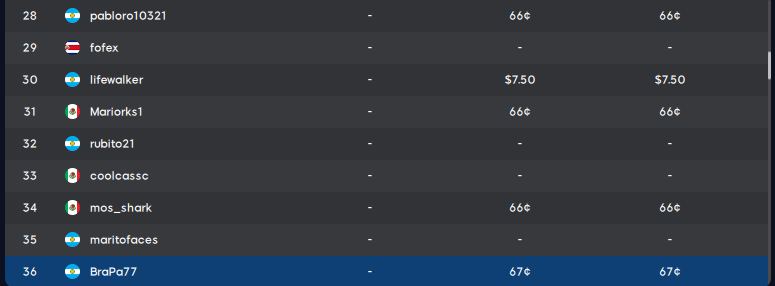 | 69 | Mariorks1 | MEX | 25 | 85 | 110 | 220 | |