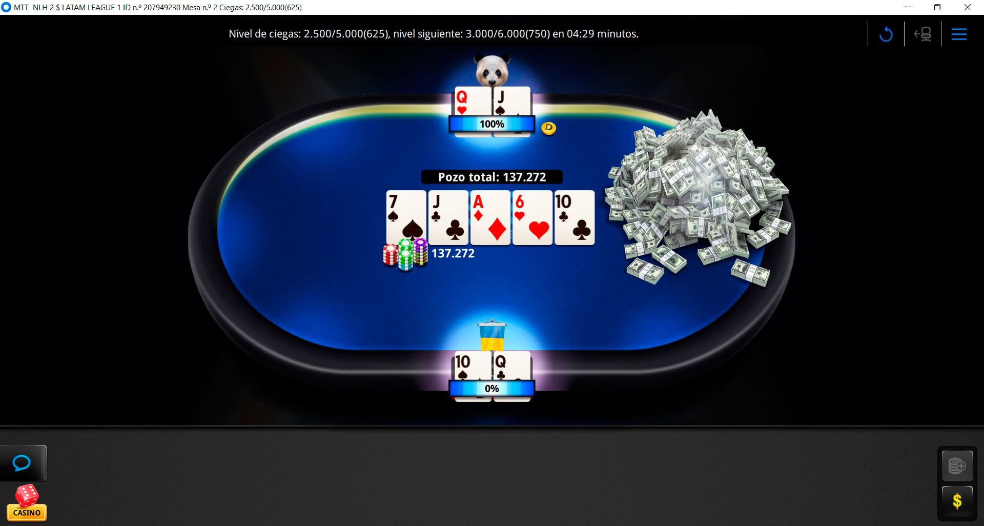 El heads up fue contra el argentino Blackcolman cuando en un flip su QT no pudo superar al QJ del brasileño, otorgándole un premio de $ 28,06 por el segundo puesto. Completó el podio MITEDY 🇻🇪 quien se llevó $ 19,81.