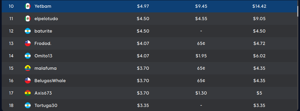Resultados final de la 1ra fecha LATAM LEAGUE de MAYO ![]()