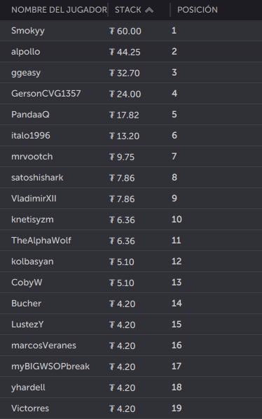 , por que gracias a la sumatoria de puntos de las 4 fechas quedó primero en el Ranking y se llevo el premio de u$s 125 en tickets en COINPOKER.