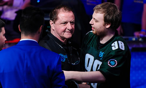 Con el marcado liderazgo de McKeehen, se vio perder luego algo de intensidad con mucho en juego y los riesgos lentamente en creciente. Los rails se mantuvieron efusivos, con la presencia de grandes como Phil Laak, Brian Rast y Phil Hellmuth en las gradas. Luego de un rato, le llegó el turno a Pierre Neuville, que tras sufrir un duro golpe contra Neil Blumenfeld vio todo su stack ir al centro con A-J de tréboles mientras McKeehen nuevamente oficiaría de verdugo con su J-6 de corazones, que encontró color en el river y así cerró las acciones del día 1 de esta Mesa Final.