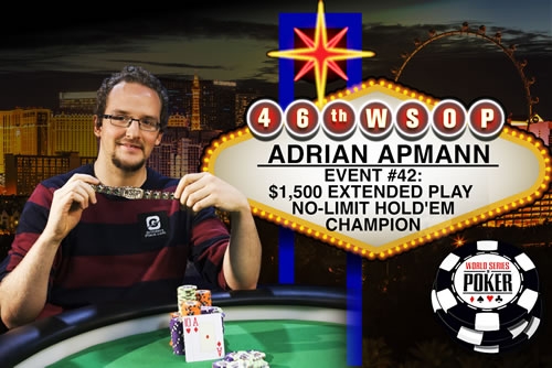 1914 jugadores decidieron probar el Evento #42 de la WSOP Extended Play, evento que debutó esta serie. Entre los presentes no faltaron los nombres mayúsculos: Antonio Esfandiari, Yevgeni Timoshenko, Erick Lindgren y Sylvain Loosli entre otros estuvieron allí. Incluso la presencia argentina, de la mano de Damián Salas (38°) y Mario López (87°), logró introducirse a los cobros para dar la buena noticia.