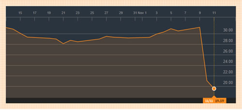 Valor de la acción de Amaya Gaming Inc el último mes.