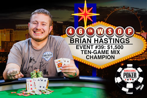 El primer multi-ganador de brazaletes esta WSOP 2015 es Brian Hastings, quien se llevó el Evento #39 Ten Game Mix luego de haber triunfado en el Evento #27 Stud hace más de una semana. El Ten Game Mix es una modalidad que involucra una rotación de estas variantes de juego: