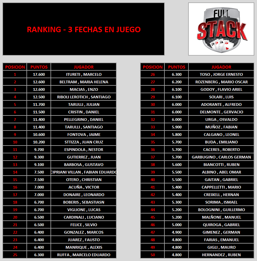 Luego de esta 3era fecha, así se encuentra el ranking actualizado, con Marcelo Itureti aún en la punta: