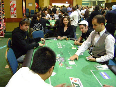 Aquí observamos el sit & go que mas tarde ganaría Ivan Raich al eliminar a José Severino de Panamá y la esposa de Dennis Phillips. Sin dudas gano su entrada al DÍA 1B con mucha autoridad. El marplatense estaba acompañado por mucha gente que lo alentó permanentemente haciendo sentir su localía.