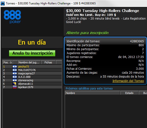 Los esperamos a todos, acompañando a los 5 representantes, en el Tuesday High-Rollers Challenge en 888Poker de 109 u$sde entrada.
