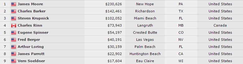 Radiólogo de profesión, Moore debió vencer a Charles Barker en el HU para lo que fue su 2º cobro en la serie, habiendo entrado ITM en el Seniors de la WSOP 2013. Entre los inscriptos hubo jugadores de peso como TJ Cloutier, David Sklansky, John Morgan y Phil Hellmuth Sr.