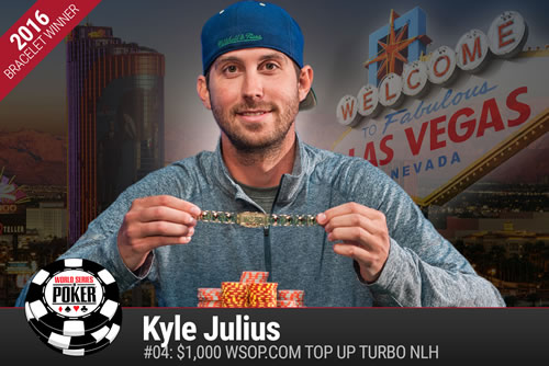 La WSOP 2016 ya encontró a su segundo dueño de brazalete: Kyle Julius venció al belga Bart Lybaert en el HU del Evento #4 U$S 1000 Top Up Turbo No-Limit Hold’em para quedarse con un premio de U$S 142,972. Entre los 667 inscriptos del torneo se destacaron presentes como Liv Boeree, Ryan Riess, David Williams y Chino Rheem entre otros.