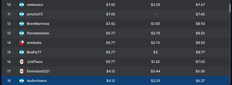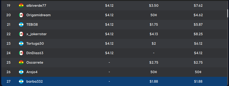 que finalizó en el puesto 25° se quedaría con el ticket de premio por ser la burbuja. Además «challatre24»