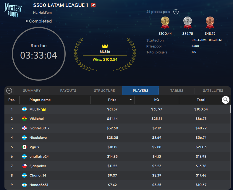 Esta fue la mano que definió el torneo a favor del jugador argentino «ML816» ![]()