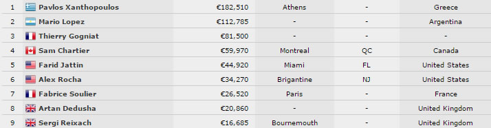| 2 | Pavlos Xanthopoulos (GRE) | 849,000 |