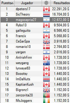 El poker corre en la sangre, y Nico Betbesé lo volvió a demostrar finalizando en el podio de un torneo grande de PokerStars. Esta vez fue en la edición del Wednesday Hundred Grand de ayer, que cuenta con un buy-in de U$S 320 y un pozo que supero los U$S 115.000, de los cuales U$S 12.672 irían a Nicolás por su tercer lugar. Otro argentino tuvo presencia en la mesa final, «galleguito», quien quedó en 5to lugar con un premio de U$S 6.566. El canadiense David Peters se llevaría el torneo seguido por el tico «SicTheory». Nombres como Francisco Benítez, Josh Prager, Hillton Laborda poblaron el duro field .