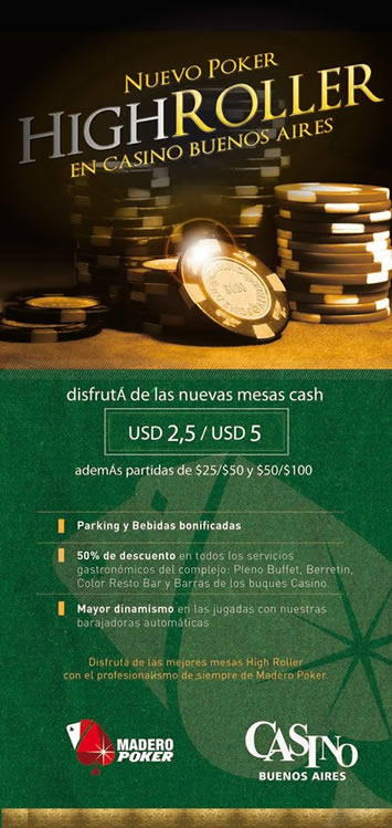 El Casino de Puerto Madero – Buenos Aires sumó a su oferta de mesas de poker cash unas nuevas con límites y entrada en dólares que tendrá agregados como 50% de descuento en todos los servicios y parking y bebidas bonificadas. El límite será de U$s 2.5/5, con una compra mínima de U$S 300 y máxima de U$S 1000, y recompras de U$S 200.