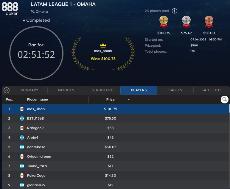 Estos fueron los ganadores del sorteo de tickets realizado en el canal de Twitch, felicitaciones y muchas gracias por acompañarnos. Todos los tickets serán acreditados en sus cuentas de 888poker la 1ra semana de JULIO.