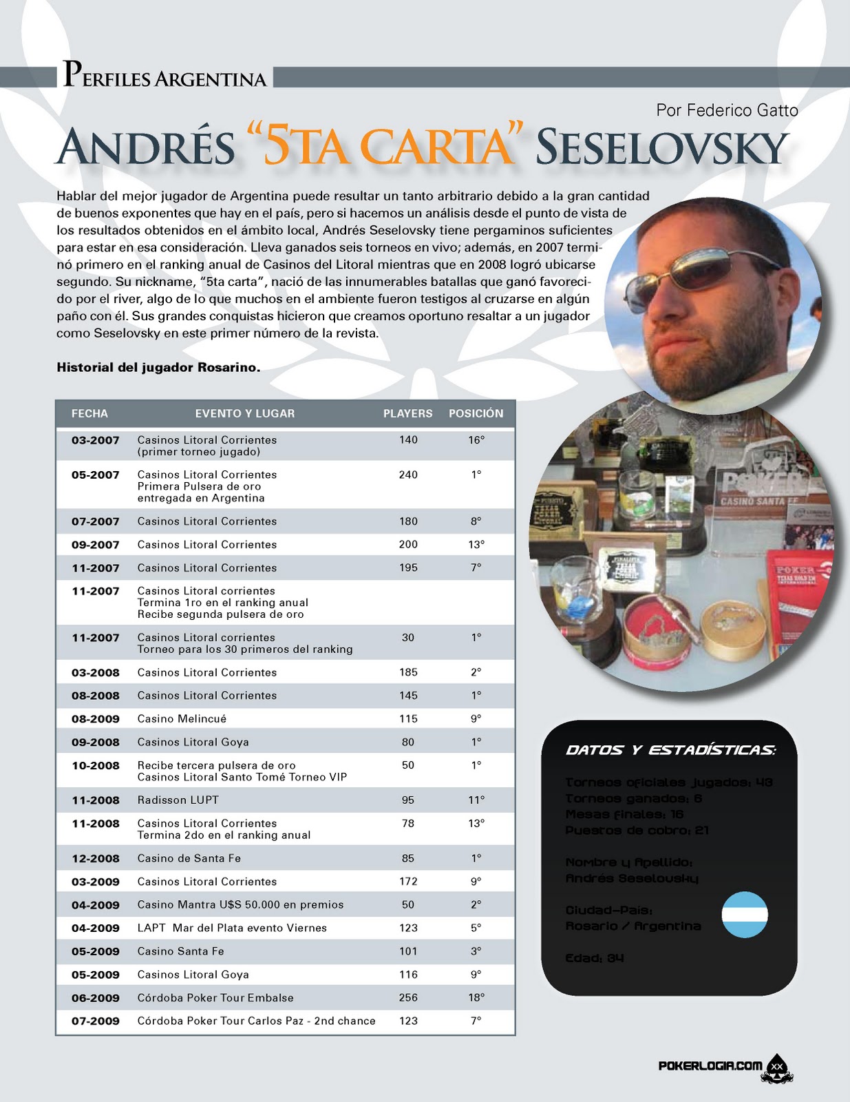 Hablar del mejor jugador de Argentina puede resultar un tanto arbitrario debido a la gran cantidad de buenos exponentes que hay en el país, pero si hacemos un análisis desde el punto de vista de los resultados obtenidos en el ámbito local, Andrés Seselovsky tiene pergaminos suficientes para estar en esa consideración. Lleva ganados seis torneos en vivo; además, en 2007 terminó primero en el ranking anual de Casinos del Litoral mientras que en 2008 logró ubicarse segundo.