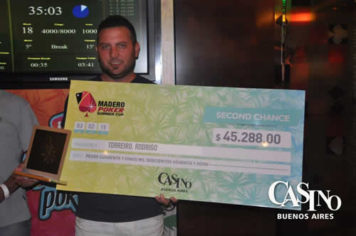 48 jugadores decidieron dar el presente para el Second Chance de la Summer Cup 6K en el Casino Puerto Madero. Con un buy-in de $3000, el pozo final fue de $122.400 a repartirse entre los mejores 5. El campeón fue Rodrigo Torreiro quien se adjudicó la suma de $45.228 tras vencer a Alejandro Riobo en el HU. Estos fueron los 5 jugadores en cobros: