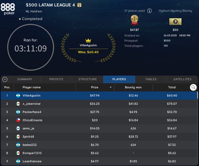 Ranking mensual y también a los que participaron. Aquellos ganadores de tickets deben enviar su número de support ID a info@pokerlogia.com para ser acreditados en sus respectivas cuentas de 888poker. (tiene hasta el 3 de mayo o perderán el derecho al mismo)