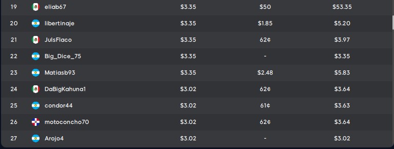 | 24 | elskorpyon12 | ARG | 0 | 0 | 23 | 23 | |